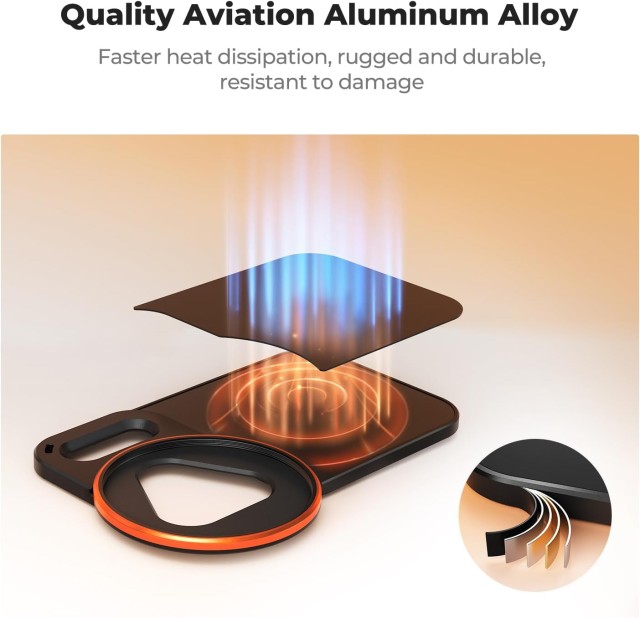 A kétoldalas mágneses tartó elülső oldalán 17 erős N52-es neodímium mágnes, hátoldalán pedig 8 mágnes található, amelyek 2500 gs (≈8 N) mágneses vonzóerőt biztosítanak a gyors és stabil rögzítéshez. Támogatja a mágneses kiegészítőket is, például a kitöltő fényeket és a állványokat, így sokoldalúan használható.