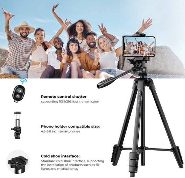 A K&F 59,4''/1,5 m-es alumínium utazóállvány egy könnyű és sokoldalú állvány, amelyet okostelefonokhoz és fényképezőgépekhez egyaránt terveztek. A mindössze 0,61 kg súlyú állvány állítható magassággal (17-60 hüvelyk), 360°-os panorámafelvétellel és kompakt, összecsukható kialakítással (42 cm), Bluetooth távirányítóval rendelkezik, így tökéletesen alkalmas utazáshoz és kültéri fotózáshoz.