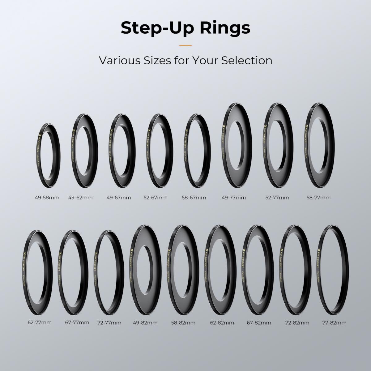 K&F 62-77mm Step Up sárgaréz szűrő adaptergyűrű. Kompatibilis minden 62 mm-es fényképezőgép objektívvel és 77 mm-es tartozékkal (például szűrőkkel, napellenzőkkel, vakukkal és objektívkonverterekkel). Az objektív menetmérete az objektív sapkája alatt vagy valahol az objektív csövén található. Klasszikus kialakítás, CNC-öntött, tartós és rugalmas sárgarézből a zökkenőmentes felszerelés és a tartós használat érdekében. A cél az objektív átmérőjének növelése, költségmegtakarítás.