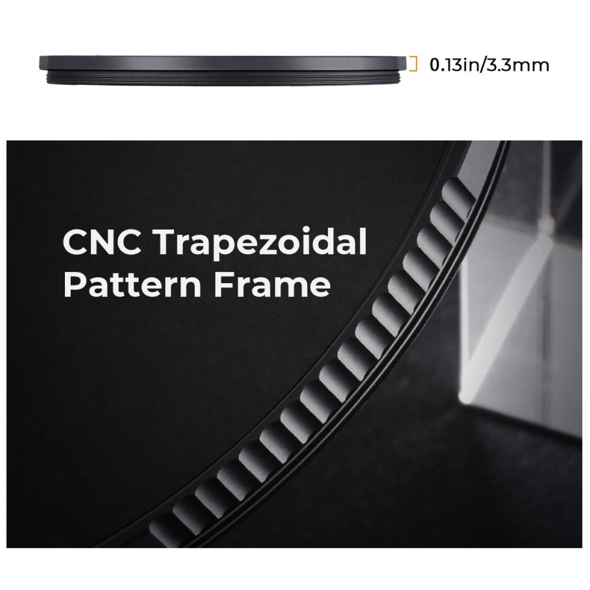 A K&F Concept 67 mm-es Nano-X Black Mist 1/2 szűrő lágy, filmszerű diffúziós hatást biztosít a fényes tükröződések szabályozásával és a bőr tónusainak simításával, miközben megőrzi a nagy felbontású képminőséget. Prémium optikai üveggel, zöld bevonatú többrétegű bevonattal és ultravékony kerettel rendelkezik, így ideális portréfotózáshoz és videofelvételekhez.