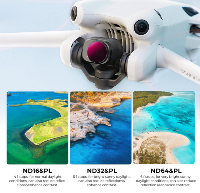 A K&F 6db szűrőkészlet a DJI Mini 4 Pro-hoz CPL, ND4&PL, ND8&PL, ND16&PL, ND32&PL és ND64&PL szűrőket tartalmaz, amelyek átfogó fényszabályozást és a képminőség javítását biztosítják. A legjobb AGC optikai üvegből készült, 28 rétegű nanobevonattal ellátott szűrők robusztus védelmet és nagy felbontású tisztaságot biztosítanak. A készlet egyesíti az ND és CPL funkciókat a tükröződés csökkentése, a fény kezelése, valamint a színtelítettség és a kontraszt javítása érdekében anélkül, hogy befolyásolná a kardán kalibrálását és egyensúlyát.
