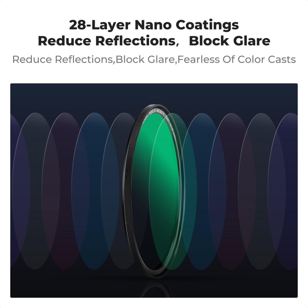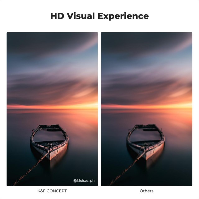 A K&F Concept 72 mm-es mágneses 5 részes szűrőkészlet tartalmaz GND8, ND8, ND64 és ND1000 szűrőket, valamint egy mágneses adaptergyűrűt, amely 1 másodperc alatt cserélhető, prémium többrétegű AGC optikai üveget és ultra-vékony kialakítást, amely megakadályozza a vignettálást – tökéletes tájkép- és hosszú expozíciós fotósok számára.