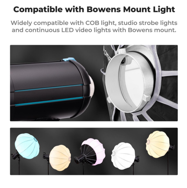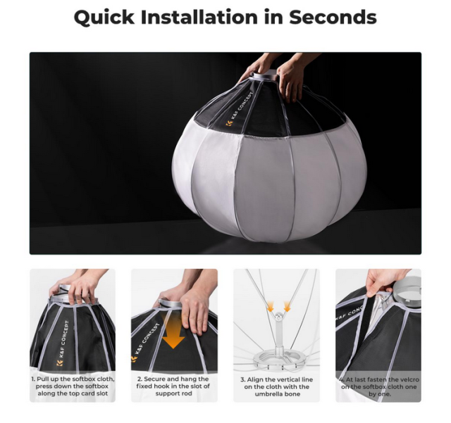 A K&F 85CM Lantern Soft Light Box olyan fotósok és filmesek számára készült, akiknek sokoldalú és hatékony világítási megoldásokra van szükségük. Gömb alakú kialakítása 360°-os, minden irányba kiterjedő lágy fényt biztosít, így a 270°-os sugárzási szöggel egyenletesen szórja a fényt, így tökéletes a stúdióhasználathoz. Ez a lámpás softbox ideális arra, hogy egyetlen fényforrással lágy, egyenletes megvilágítást hozzon létre széles területen.