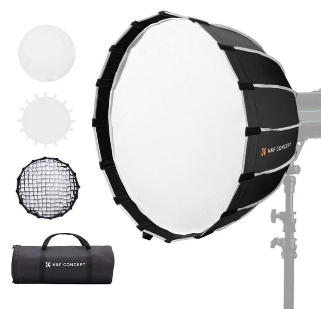 A K&F 90cm Quick Release Hexagonal Parabolic Softbox Bowens rögzítéssel úgy tervezték, hogy sima, egyenletes fényeloszlásával fokozza a fényképezést és a videózást. Ez a mély parabolikus softbox tompítja a kemény tükröződést, kiküszöböli a nem kívánt árnyékokat, és megőrzi a színhű színvisszaadást. Gyorskioldó és összecsukható ötvözött tokmányszerkezete időt és energiát takarít meg, így hatékonyabb, mint a hagyományos softboxok. A 16 tartós és rugalmas bordának köszönhetően hosszas használat után is megőrzi kifogástalan alakját és tartósságát. A mellékelt méhsejtrács és a diffúzorok pontos fényszabályozást és kreatív hatásokat tesznek lehetővé, így ideális portrékhoz, termékfotózáshoz, szépség- és divatfotózáshoz, esküvőkhöz és vállalati headshotokhoz.