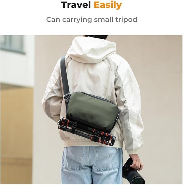 A K&F Concept KF13.157V3 Multifunkcionális vízálló fényképezőgép oldaltáska egy sokoldalú 10 literes fényképezőgép táska, amelyet úgy terveztek, hogy védve tartsa felszerelését, miközben többféle hordozási lehetőséget biztosít. A tágas, egy fényképezőgép és két objektív befogadására alkalmas belső térrel ez a táska a vállon, a derékon vagy a testen keresztül is hordható, alkalmazkodva az Ön kényelméhez és preferenciáihoz. Vízálló, karc- és kopásálló anyaga biztosítja, hogy felszerelése biztonságban maradjon a nedvességtől és a kisebb ütésektől.