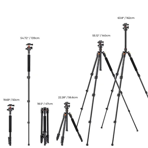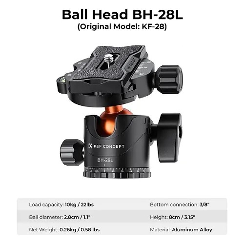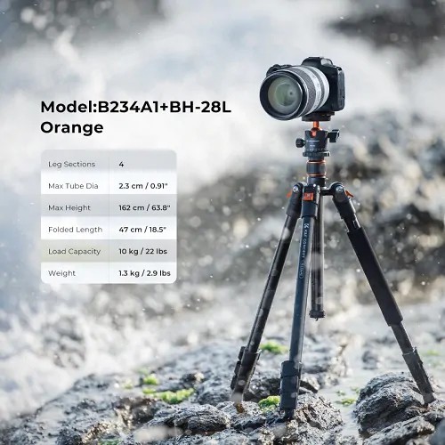 A K&F Concept B234A1+BH-28L egy robusztus, mégis hordozható teleszkópos állvány , amely katonai minőségű magnézium-alumínium ötvözetből készült, és olyan fotósok számára készült, akik erősséget, stabilitást és rugalmasságot igényelnek. Nagy teherbírású 28 mm-es gömbfejjel és levehető monopoddal rendelkezik, így ideális utazási, kültéri, makró és portréfotózáshoz.