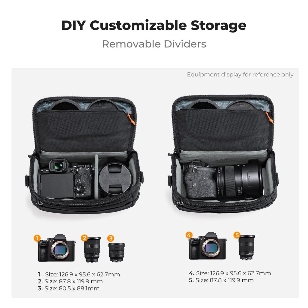 Az utcai fotózáshoz és utazáshoz tervezett, könnyű (764 g) válltáska kényelmesen elfér benne 1 DSLR/tükör nélküli fényképezőgép és 2 objektív. Ideális azoknak a fotósoknak, akik kompakt táskára van szükségük utazás közben.