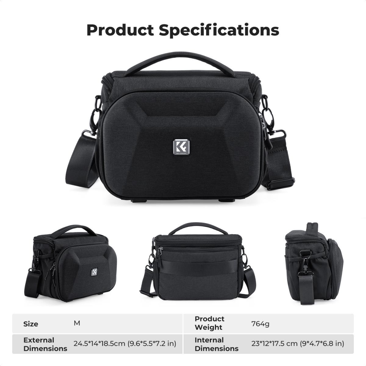K&F Concept Camera Sling Bag – vízálló válltáska DSLR/tükör nélküli fényképezőgépekhez, kemény héjjal és állványtartóval. Méret: M.