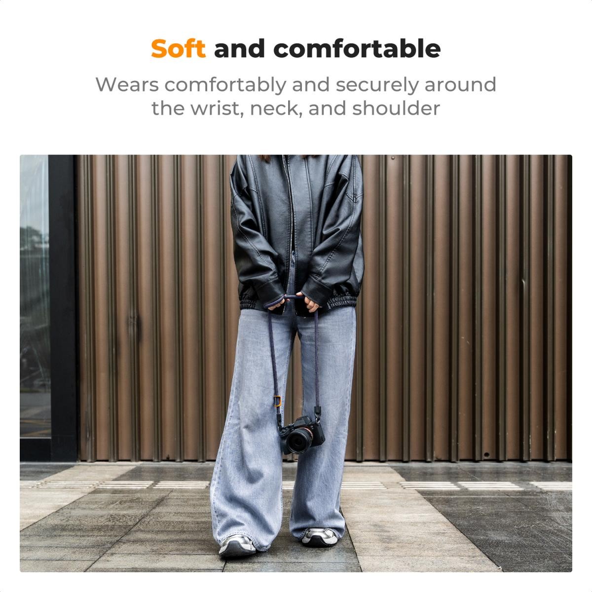 A könnyű és puha pánt kényelmes viseletet biztosít a nyak körül, még hosszú távú használat esetén is, ideális hosszú fotózási munkákhoz.