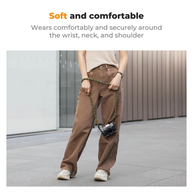 A könnyű és puha pánt kényelmes viseletet biztosít a nyak körül, még hosszú távú használat esetén is, ideális hosszú fotózási munkákhoz.