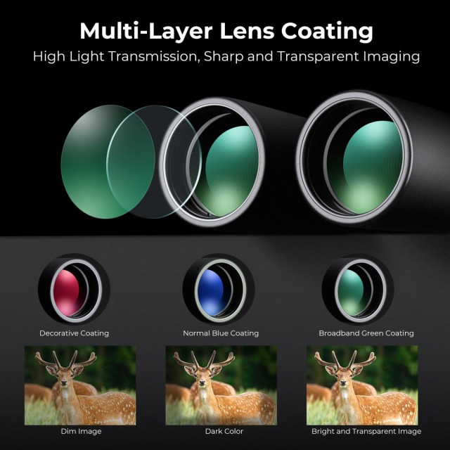 Bemutatjuk a K&F Concept Continuous Zoom távcsövet 12X50 állítható nagyítással, amely rugalmasságot és nagyobb látómezőt kínál. A 99%-os fényáteresztést elérő BAK4 prizmás FMC többrétegű bevonatú lencsékkel ezek a távcsövek nagy felbontású, színhelyes képet biztosítanak. IP66-os vízálló kialakítással, állványkompatibilitással és átgondolt kivitelezéssel kiváló karácsonyi ajándék a vadvilág szerelmeseinek, optimális teljesítményt biztosítva a csodálatos pillanatok megörökítéséhez.