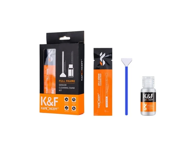 K&F Concept tisztító készlet digitális tükörreflexes fényképezőgépekhez vagy teljes képkocka-érzékelős tükörreflexes fényképezőgépekhez (10 db tisztító pálcika + 20 ml tisztító folyadék).