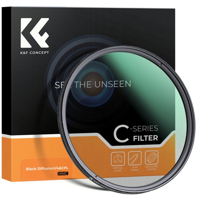 A K&F CONCEPT 37 mm-es 2 az 1-ben CPL + Black Mist 1/4 szűrő egy sokoldalú kreatív eszköz, amelyet azoknak a fotósoknak és filmeseknek terveztek, akik professzionális filmes eredményeket szeretnének elérni közvetlenül a fényképezőgépből. A körkörös polarizáló (CPL) és a Black Diffusion 1/4 szűrő egyetlen egységbe történő kombinálásával nincs szükség több szűrő egymásra helyezésére, miközben megőrzi a kép élességét és megakadályozza a vignettálást.