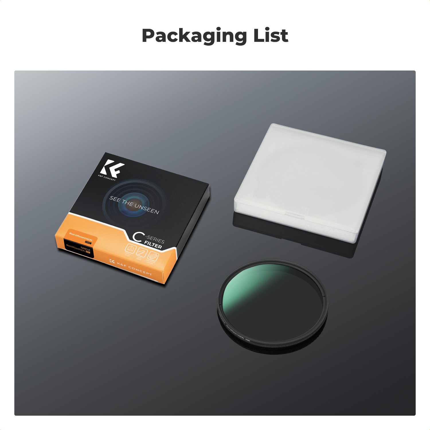 A Black Mist 1/4 diffúziós réteg finoman lágyítja a kemény fényeket, csökkenti a kontrasztot és simítja a bőr textúráját, így az arcvonások természetesebbnek és kellemesebbnek tűnnek. Gyengéd ragyogást hoz létre a fényforrások körül, ami tökéletes portrékhoz, divatfotózáshoz, filmes videókhoz és éjszakai jelenetekhez. Eközben a forgatható CPL szűrő hatékonyan csökkenti a víz, az üveg és más nem fémes felületek tükröződését, miközben javítja a színtelítettséget és a kontrasztot.