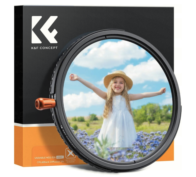 A K&F Concept 37 mm-es NANO C sorozatú 3 az 1-ben hibrid szűrő egy kompakt, nagy teljesítményű megoldás, amely egy változó ND2–32, CPL polarizáló és Black Mist 1/4 diffúziós szűrőt egyesít. Fotósok és filmesek számára egyaránt tervezve, pontos fényvezérlést, jobb színeket és kontrasztot, valamint filmszerű lágy fényhatást kínál – anélkül, hogy a sok változó ND szűrőnél gyakori nem kívánt fekete „X” jelenség jelentkezne.