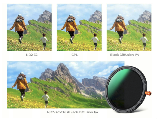 | Filter type | VND+CPL+BlackMist 3in1 |