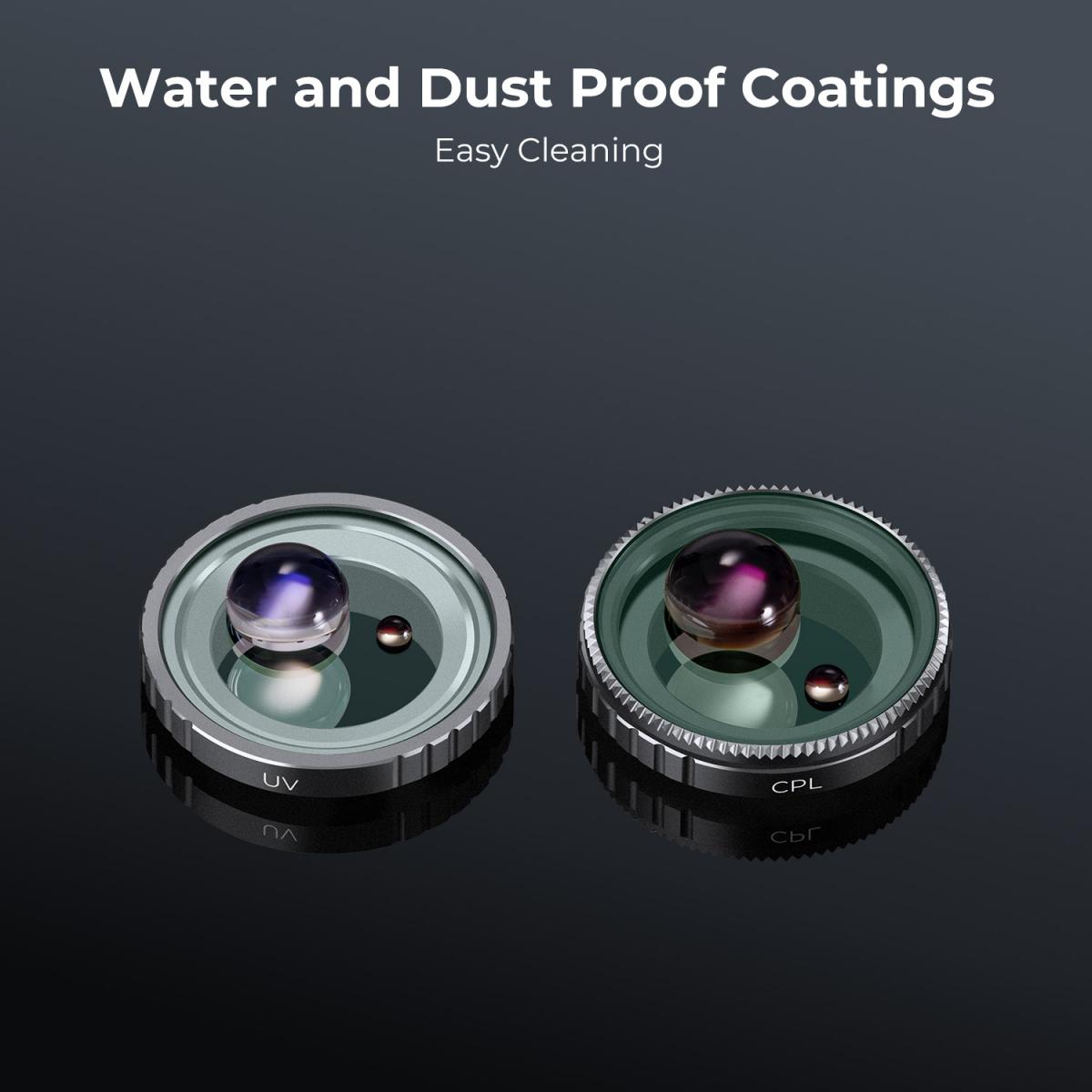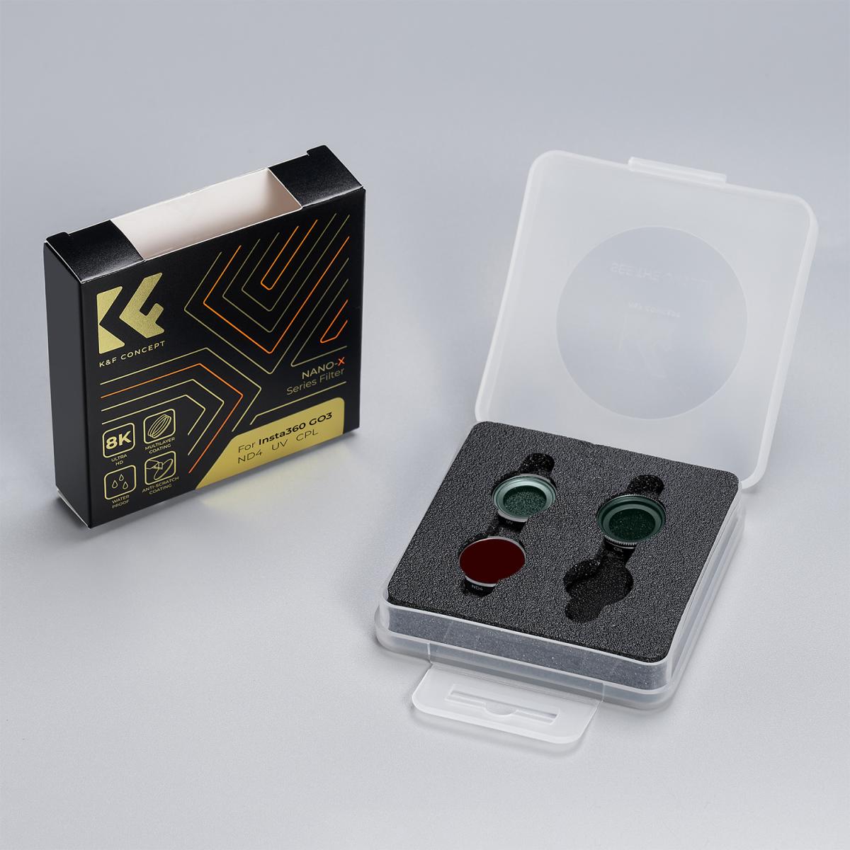 Emelje Insta360 GO 3 fényképezésének színvonalát a szűrőkészlettel, amely UV, CPL és ND4 szűrőket tartalmaz a sokoldalú fényképezési lehetőségekhez. A HD AGC üveggel és 28 többrétegű bevonattal készült szűrők javítják a képminőséget, csökkentik a tükröződést és védik az objektívet, miközben az egyszerű telepítés zökkenőmentes használatot biztosít.