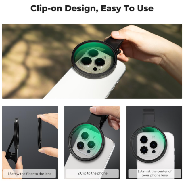 Az optikai kiválóság érdekében készült szűrő 18 rétegű, fejlett tükröződésgátló bevonattal rendelkezik, amely jelentősen csökkenti a felületi tükröződéseket és a szellemképeket, így kristálytiszta képet biztosít még erős fényviszonyok között is, miközben megőrzi a kép kontrasztját és részleteit. A telepítés egyszerű az innovatív hátsó rögzítő kialakításnak köszönhetően, amely másodpercek alatt biztonságosan rögzíti a szűrőt közvetlenül a telefon kameramoduljához – nincs szükség szerszámokra, adapterekre vagy modellekhez specifikus módosításokra, így gond nélkül kiegészítheti felszerelését.