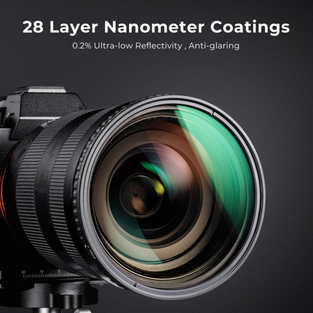 - 【Multi rétegű bevonat】Minőségi japán optikai üvegből készült, kétoldalas 28 rétegű nanobevonat, homokfúvás és oxidáció, amely csökkenti a lencse tükröződését és eltávolítja a tükröződést. Ezáltal nagymértékben csökkenti a hosszú expozíciós lencse külső védelmi vonalának visszaverődése által okozott tükröződési jelenséget, biztosítva az első osztályú képminőséget. Egyszerre vízálló, olajálló és porálló