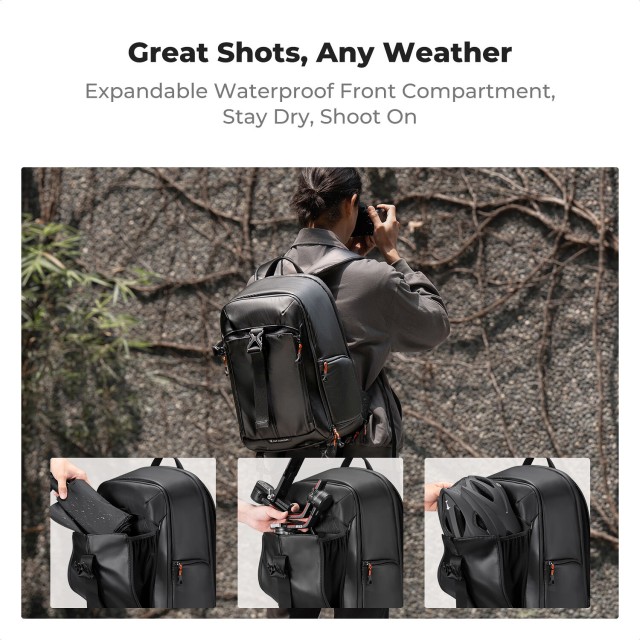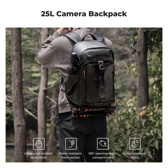 Erős, vízálló nylonból készült, megerősített varrásokkal, ez a táska esővédő burkolattal is rendelkezik, amely enyhe időjárási körülmények között védelmet nyújt. A külső pántok és rejtett zsebek segítségével a legfontosabb tárgyak kéznél vannak, a kényelmet pedig a lélegző háttámla és az állítható pántok biztosítják. Tökéletes városi fotózásokhoz, utazáshoz vagy terepi használatra, megbízható tulajdonságai hasonlóan magas színvonalú kialakítást tükröznek, mint a többi K&F 25 L változat. Bár a tartósság változó lehet, és a hosszú távú támogatás korlátozott, sok felhasználó