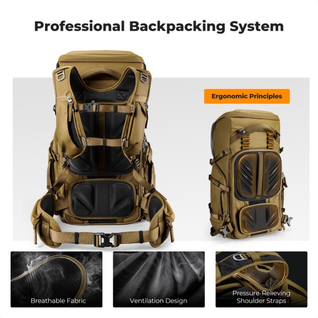 A K&F CONCEPT Star Wander05 40L hátizsákot úgy tervezték, hogy megfeleljen a komoly szabadtéri fotósok, tájképalkotók és túrázás szerelmeseinek igényeinek. Professzionális túrahátizsákok szabványai szerint készült, háromszoros állítható hevederrendszerrel rendelkezik, amely lehetővé teszi a vállmagasság, a mellkasheveder és az öv pontos beállítását, így sokféle testalkathoz illeszkedik. Ez az ergonómikus kialakítás egyenletesen osztja el a nehéz terheket, csökkentve a fáradtságot hosszabb túrák és nagy terhelésű feladatok során.