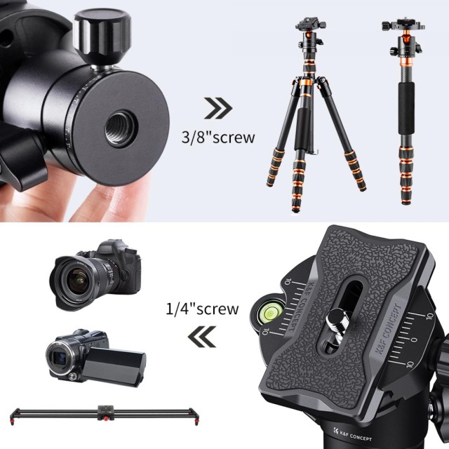K&F Concept kameraállvány gömbfej 1/4 hüvelykes gyorskioldó lemezzel és vízmértékkel, 8 kg teherbírással, állványhoz, egylábú állványhoz, fényképezőgép csúszka, tükörreflexes fényképezőgéphez