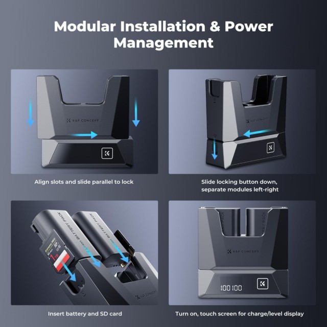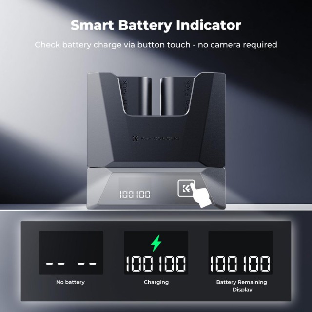 K&F Concept 2 db 2600 mAh LP-E6NH akkumulátor és 18 W-os töltő. A Canon EOS fényképezőgépekhez tervezett K&F Concept KF28.0088 akkumulátor és töltő készlettel hosszabb ideig biztosíthatja az áramellátást. A készlet két nagy kapacitású, 2600 mAh-s LP-E6NH akkumulátort és egy PD-kompatibilis, 18 W-os USB-C töltőt tartalmaz, amely gyors, megbízható töltést és hosszabb üzemidőt biztosít a professzionális alkotók számára.