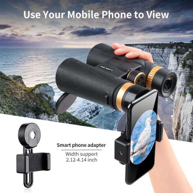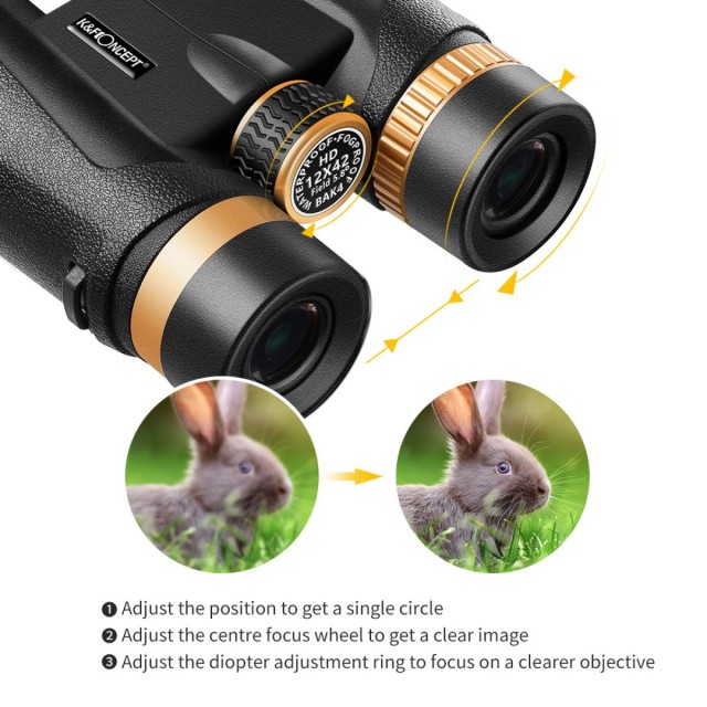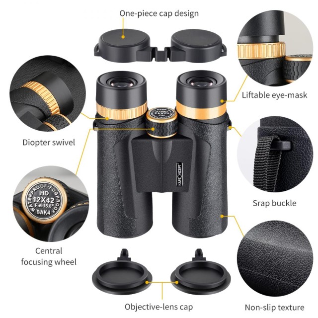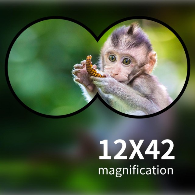 12X42 nagy nagyítású fókusz: 12X42-szeres nagy felbontású nagyítás, az optikai rendszer és az alapteljesítmény jó kombinációja, világos képek, tiszta látás. A 20 mm-es megnagyobbított okulár széles látószögű és nagy látómezőt biztosít elegendő fénybevitel mellett. A lencse többrétegű bevonatot alkalmaz a szédülés elkerülése, a tiszta és világos képalkotás biztosítása és a megfigyelési kényelem javítása érdekében. 42 mm-es nagy nyílású objektumátmérő, szélesebb látómező, amely lehetővé teszi, hogy a távoli tájat és az állatokat tisztábban és világosabban láthassa, a legtisztább, világos és stabil madármegfigyelési képet rögzíti ideális nagyítás, a látómező tartománya 101/1000m.
