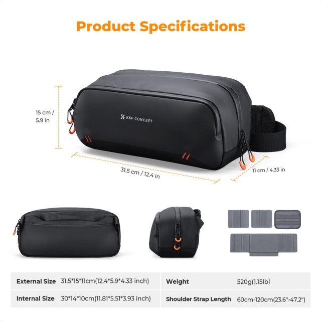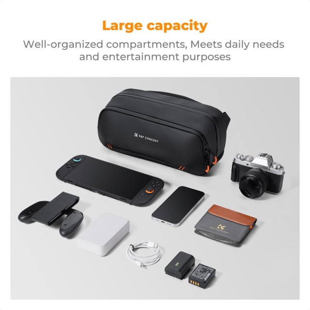 A K&F Concept digitális tárolótáska a modern alkotók számára a tökéletes társa, akik több eszközt is használnak és naponta kalandos utazásokra indulnak. Ez a kompakt, mégis nagy kapacitású táska könnyedén befogadja a Steam Deck vagy Switch 2 kézi játékkonzolokat, a DJI Pocket 3 vagy Action 4 vlogging felszereléseket, a Sony, Canon vagy Nikon teljes tükör nélküli fényképezőgép-készleteit, valamint a mindennapi használatú eszközöket, mint a telefonok és a power bankok. Belsejében egy rugalmas, több rekeszes rendszer található, amely ütésálló, testreszabható elválasztókkal biztosítja a felszerelés biztonságát, egy speciális akkumulátor-zsebbel, amely megakadályozza a rövidzárlatot és a karcolásokat, valamint egy elülső cipzárral, amelyben gyorsan elérhetőek a kulcsok vagy a fülhallgatók. Erős, vízlepergető PU anyagból készült, lezárt kétirányú vízálló cipzárral és vastag párnázással, amely megvédi az elektronikus eszközöket az esőtől, az ütésektől és a rázkódásoktól. Méretei mindössze 12,4" x 5,9" x 4,33", így kiválóan alkalmas vlogging felszerelések vagy utazási csomagok tárolására, és rejtett biztonsági zsebbel is rendelkezik az értéktárgyak számára. A levehető, állítható pánt segítségével könnyedén válthat válltáska, keresztpántos táska vagy kézitáska mód között, így egész napos kényelmet biztosít ingázás, fotózás vagy tartalomkészítés közben.