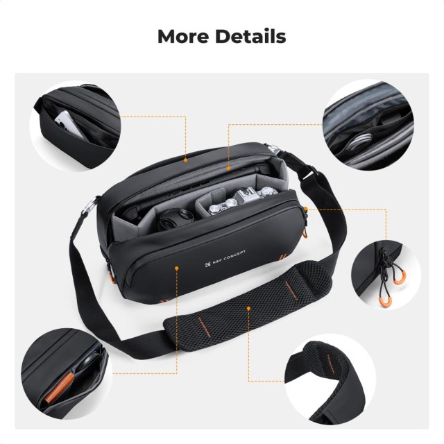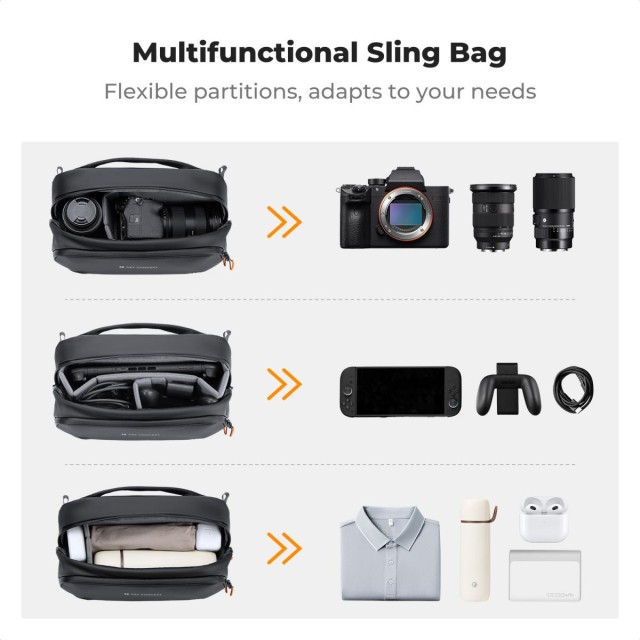 K&F Concept digitális tároló válltáska: Sokoldalú, mindenre kiterjedő technikai táska alkotóknak, amelyben elfér a Steam Deck, a DJI Pocket 3, tükör nélküli fényképezőgépek és a legfontosabb kellékek, testreszabható elválasztókkal, vízlepergető védelemmel és háromféle hordozási lehetőséggel.