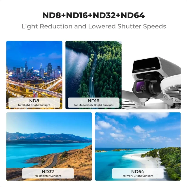 - * 【Fénycsökkentés és kiegyensúlyozott expozíció】Az ND8 ND16 ND32 ND64 szűrő 3-6 fokkal csökkenti az expozíciót, ideális különböző erős napfényes körülmények között, miközben természetesen javítja a kép részletességét. Dinamikus szabadtéri tevékenységek során blokkolja a cselekvéskamerához érkező fény megfelelő értékét, hogy a kamera paramétereit úgy állítsa be, hogy mozgáselmosódás hatást érjen el
