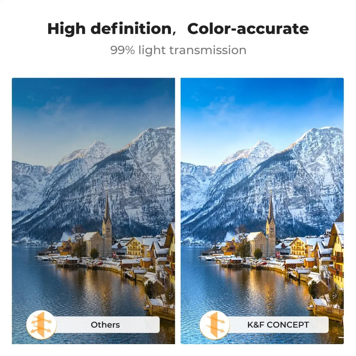 A DJI Flip UV szűrő megakadályozza az UV sugárzás hatását a képre, és védi a lencsét a portól és a víztől. A kiváló minőségű AGC optikai üvegből készült szűrő lencsék 28 rétegű nanobevonattal rendelkeznek, amely jelentősen csökkenti a tükröződéseket, a fények és a szellemképek kialakulását, javítva az általános képminőséget. Ez a kombináció biztosítja, hogy felvételei lenyűgöző tisztaságúak, színesek és részletgazdagok maradjanak.
