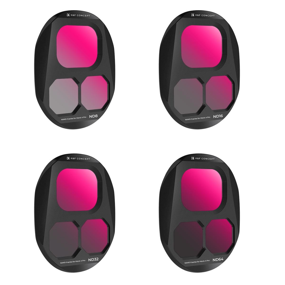 A K&F CONCEPT DJI Mavic 4 Pro ND szűrőkészletet kifejezetten azoknak a légi fotósoknak és videósoknak fejlesztették ki , akik változó fényviszonyok között is állandó expozíciót és filmszerű mozgást igényelnek. A készlet négy gyakran használt ND szűrőt tartalmaz – ND8, ND16, ND32 és ND64 –, amelyekkel 3–6 fokkal csökkenthető a fény, és optimális zársebesség tartható fenn felhős napokon és erős déli napfényben egyaránt.