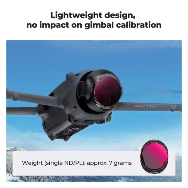 Ez az ND CPL 2 az 1-ben szűrőkészlet kifejezetten a DJI Mavic 4 Pro számára készült, és 4 darabot tartalmaz: ND8&PL+ND16&PL+ND32&PL+ND64&PL. Könnyen felszerelhető, ugyanolyan módon, mint az eredeti DJI védőlencse. Importált AGC optikai üvegből készült, többrétegű bevonattal, csökkenti a lencse tükröződését és visszaverődését, és biztosítja a kép valódi színeinek visszaállítását.