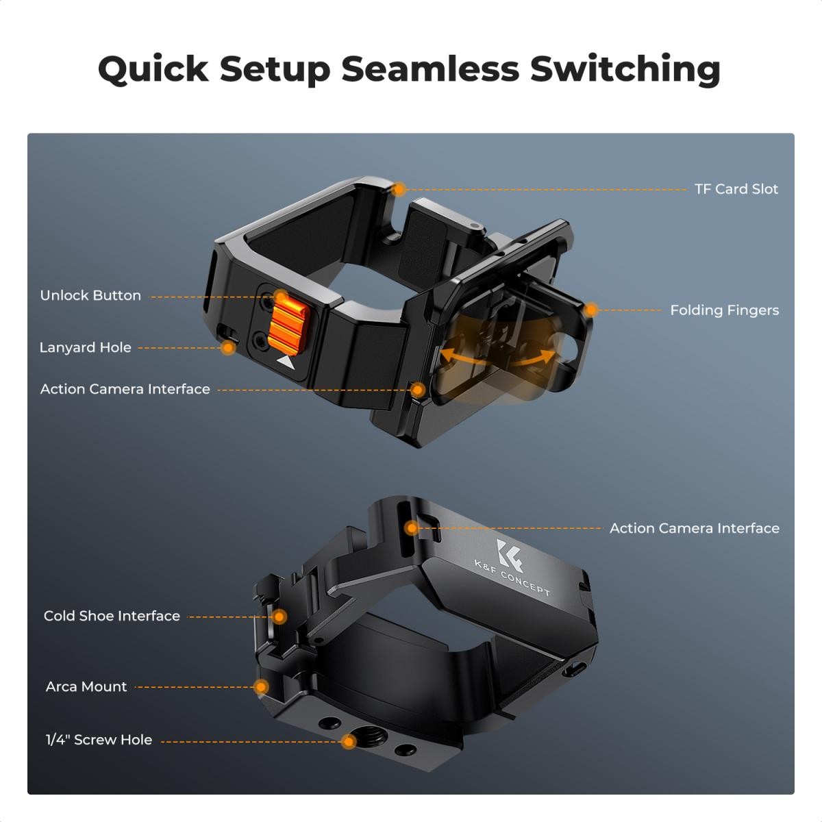 Ez egy alumíniumötvözetből készült többfunkciós bővítőkeret, amely kifejezetten a DJI Osmo Pocket 3 készülékhez lett tervezve. A bővítőkeret eltávolítása nélkül cserélheti a TF-kártyát, normál módon használhatja a joystickot és a gombokat, és normál módon csatlakoztathatja a fogantyút az aljához. A termék használata során a kamera nem kopik el. Az eredeti védőtokba is elhelyezhető.