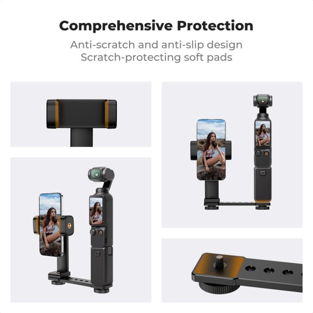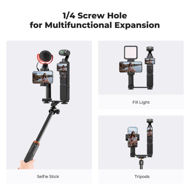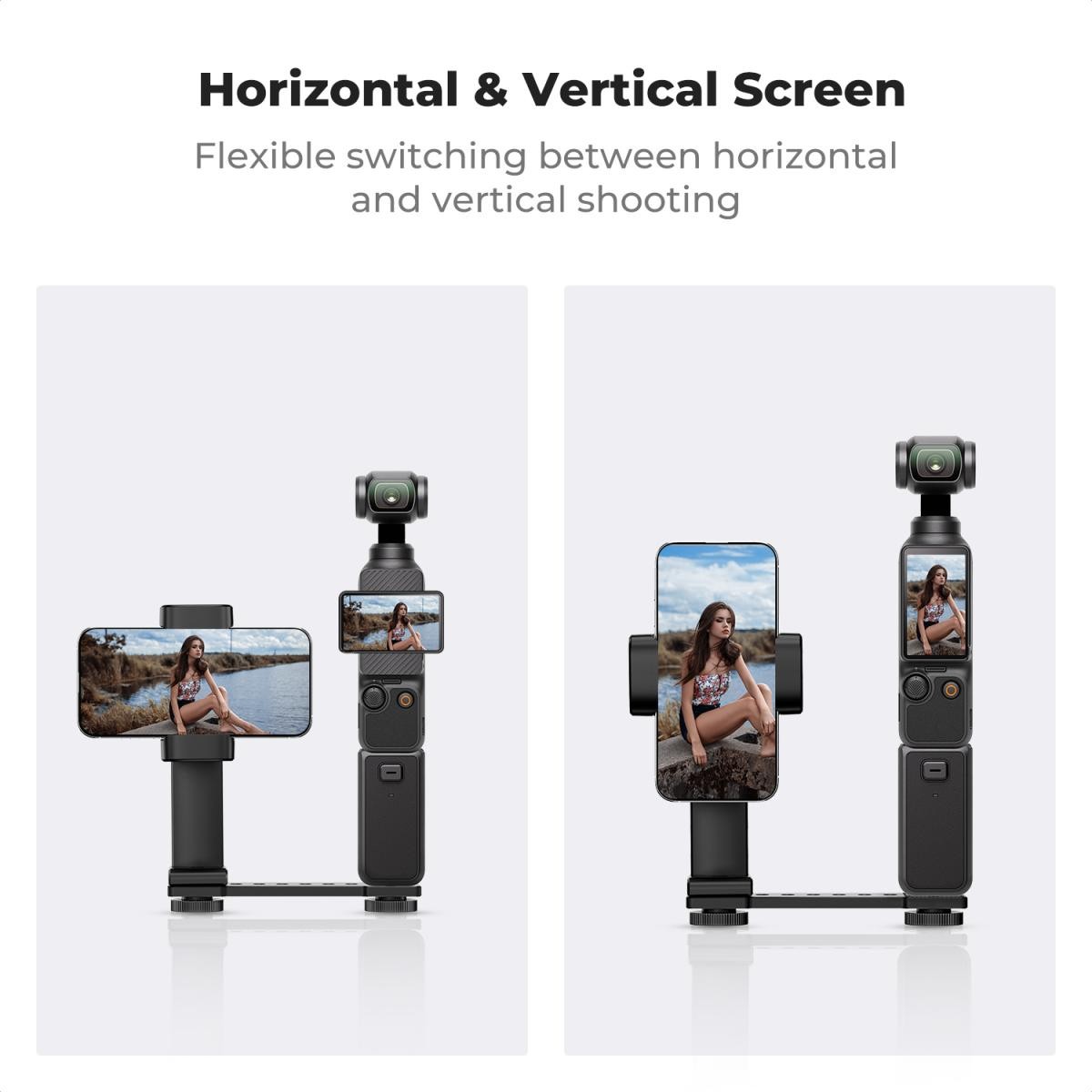 A K&F Concept DJI Osmo Pocket 3 mobiltelefon-tartó a Pocket 3 tökéletes kiegészítője, amely zökkenőmentesen integrálja okostelefonját a nagyobb képernyőnézet és a továbbfejlesztett kamera vezérlés érdekében. Prémium alumíniumötvözetből és tartós PC+ABS műanyagból, rozsdamentes acélból készült, stabil és biztonságos csatlakozást…