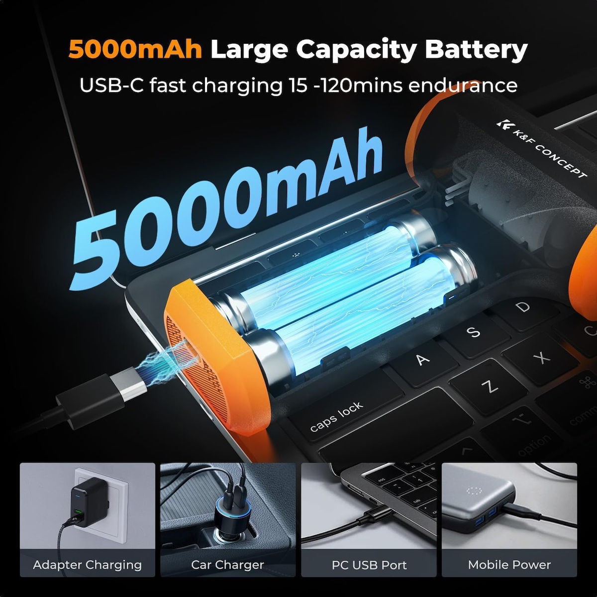 A K&F CONCEPT belépő szintű elektromos légfúvó egy kompakt, újratölthető tisztító eszköz, amelynek kefe nélküli motorja akár 110 000 fordulat/perc sebességet és 50 m/s szélsebességet is képes elérni, így tökéletesen alkalmas számítógépek, autó belső terei és egyéb kényes berendezések alapos tisztítására.