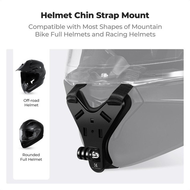 A K&F Concept sisak állcsonttartó egy sokoldalú POV-tartó, amelyet teljes arcú sisakokhoz terveztek, és amely stabil és tiszta akciókamerás felvételeket biztosít kerékpározás, síelés, motocross és egyéb dinamikus tevékenységek során. Könnyen felszerelhető és beállítható, és számos akciókamerával kompatibilis, beleértve a GoPro, DJI Osmo és Insta360 modelleket.