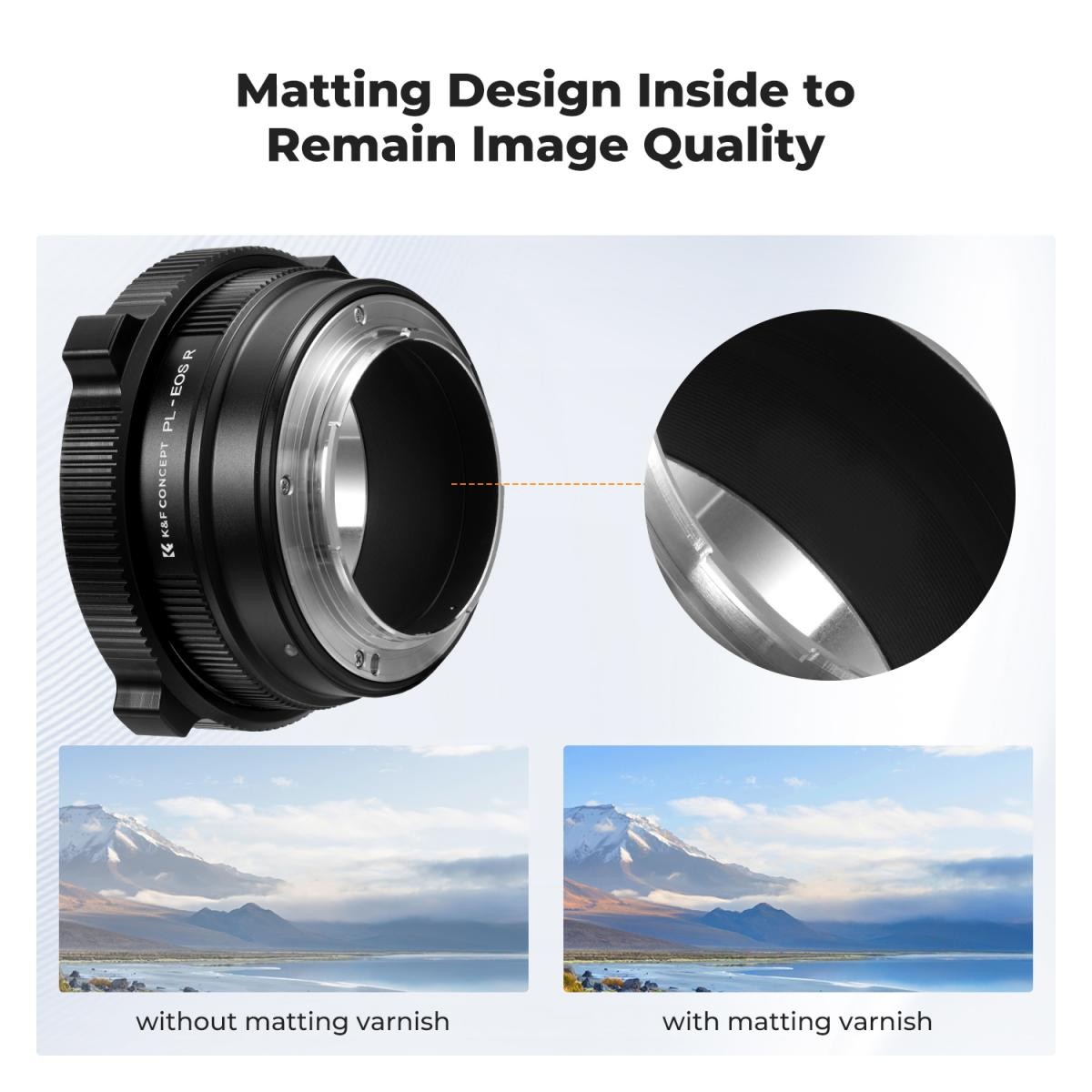 K&F Concept nagy pontosságú PL-EOS R bajonettadapter: Kézi PL-Canon RF adapter végtelen fókusszal, kemény eloxált alumínium kivitelben, EOS R sorozatú és kiválasztott LUMIX/Sigma fényképezőgépekhez.