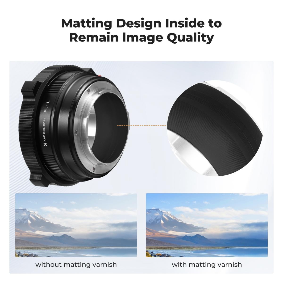 K&F Concept nagy pontosságú PL-L bajonettadapter: Kézi PL-L bajonettadapter végtelen fókusszal, kemény eloxált alumíniumból és matt belső felülettel, Leica, Panasonic LUMIX és Sigma L-bajonettes fényképezőgépekhez.