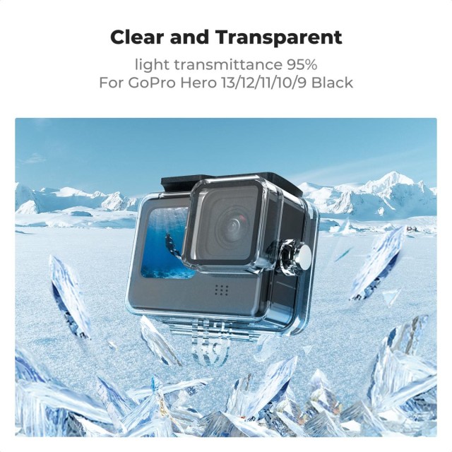 A K&F Concept KF31.158 vízálló tok segítségével minden víz alatti kalandot magabiztosan rögzíthet, amely kizárólag a GoPro Hero 13 Black kamerához lett tervezve. Extrém körülményekhez tervezett, ez a védőtok biztosítja, hogy kamerája biztonságban és szárazon maradjon akár 60 méter (196 láb) mélységben is.
