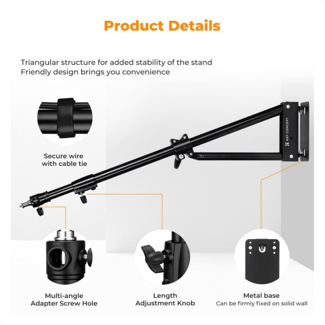 A K&F Conceptfalra szerelhető vállállvány kör alakú lámpákhoz, stúdióvilágításhoz, fényképezőgépekhez és softboxokhoz alkalmas.