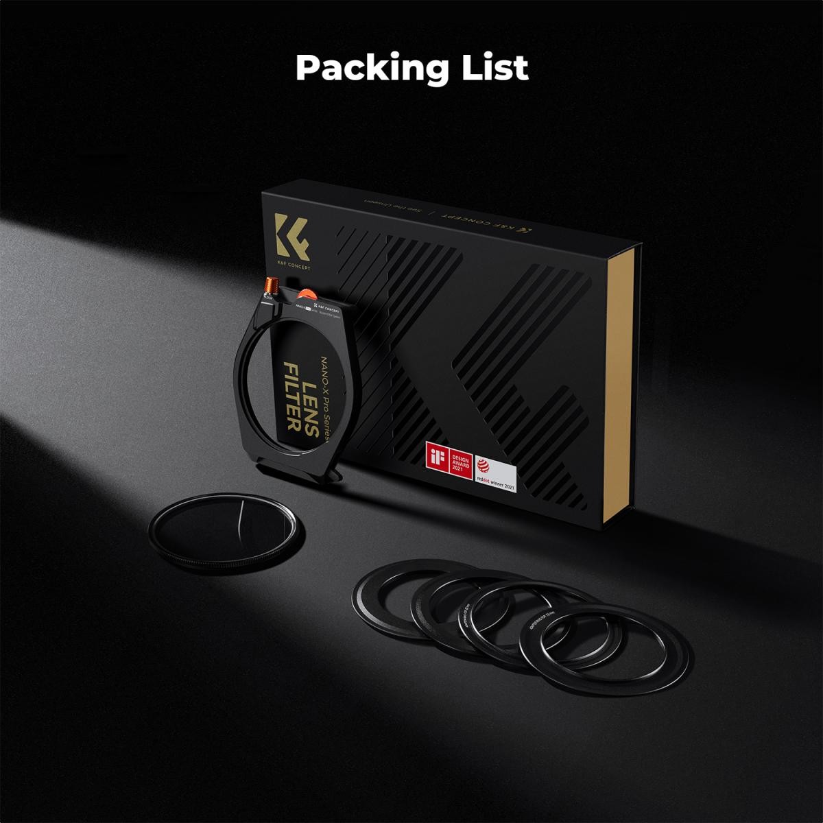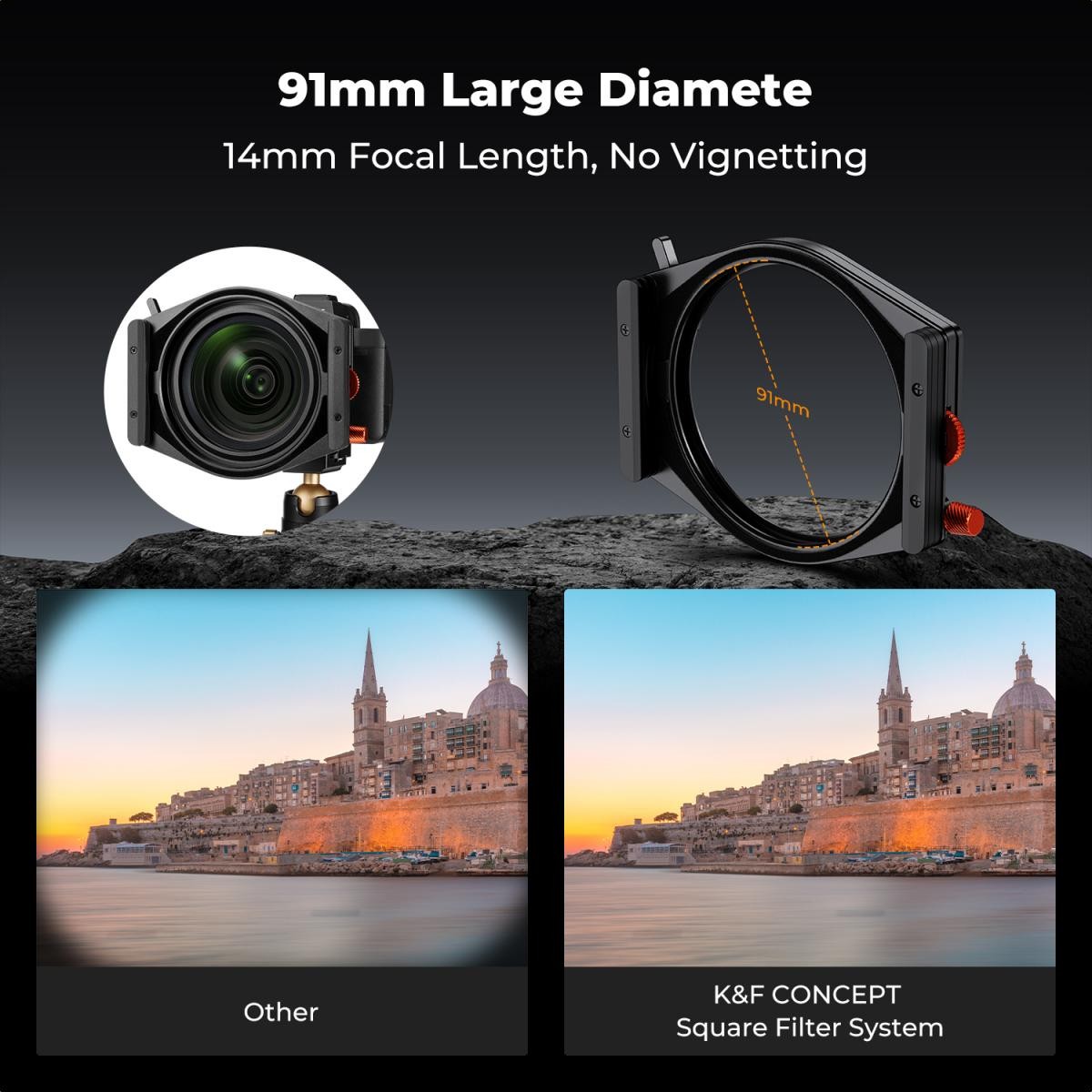A Nano X Pro sorozatból származó K&F Concept KF High-End Square Bracket System egy prémium szűrőtartó megoldás, amely ultra-vékony kialakítással és beépített 95 mm-es CPL-lel rendelkezik. Úgy tervezték, hogy még az ultraszéles objektíveken is kiküszöbölje a vignettálást. Díjnyertes konstrukcióval, 36 rétegű nano-bevonatú optikával rendelkezik, és a mellékelt adaptergyűrűknek köszönhetően többféle objektívmérettel is kompatibilis.