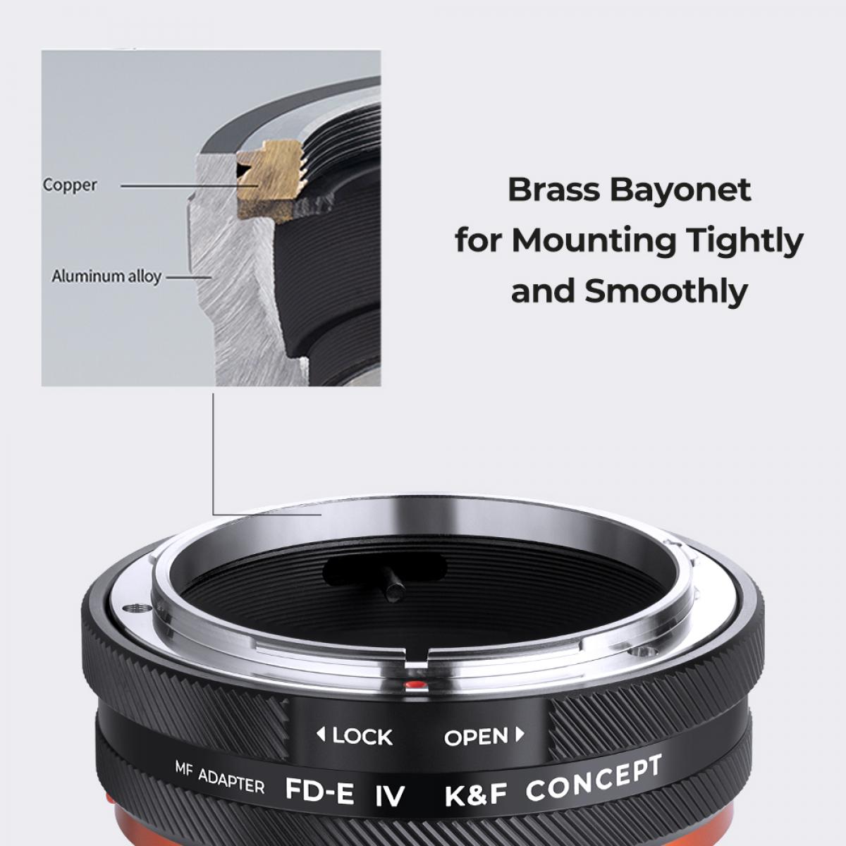 Precíziósan kidolgozott adaptergyűrűnkkel könnyedén hozzáigazíthatja Canon FD/FL sorozatú objektívjeit a Sony E sorozatú vázakhoz. A teljesen kézi vezérlés stabil és biztonságos fogást biztosít, növelve a biztonságot használat közben. A pontos igazítás érdekében piros pontlogóval ellátott adapter megkönnyíti a könnyű beszerelést és szétszerelést. A csatlakozógyűrű és a bajonett szoros integrációja kiküszöböli a meglazulás veszélyét. A nagy pontosságú alumínium-magnézium ötvözetből készült tartós gyűrű tökéletes átvitelt biztosít, lehetővé téve a kényelmes és zökkenőmentes objektív makrófunkciókat, a végtelen fókuszálás további előnyével. Emelje a fényképezést ezzel a megbízható és sokoldalú adapterrel.