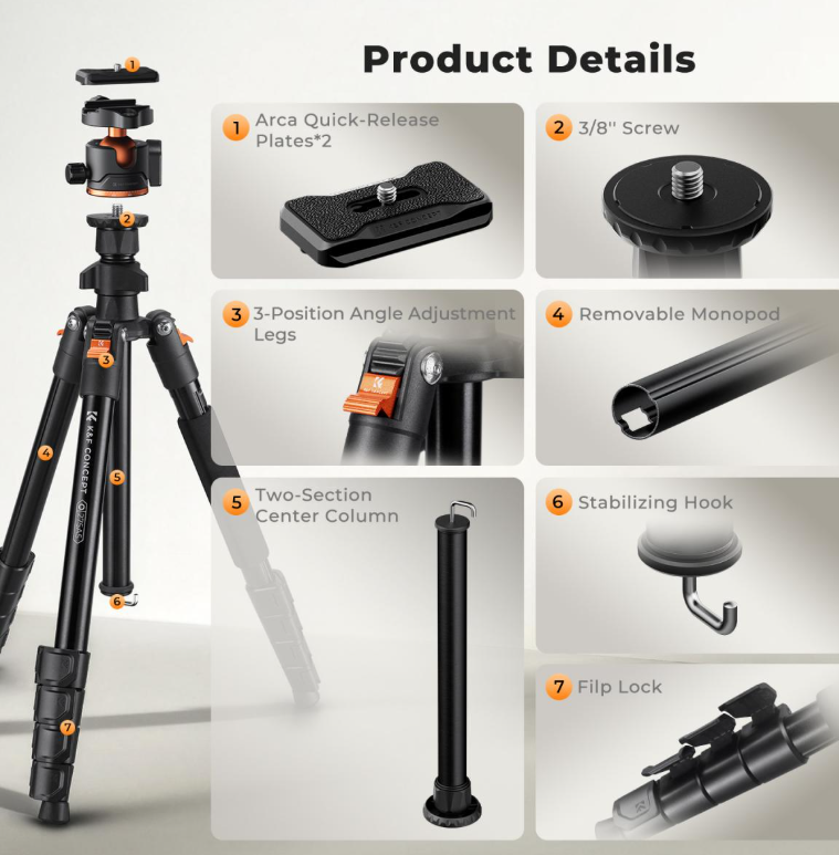 A K&F Concept 75" könnyűsúlyú állvány egy kompakt, sokoldalú állvány, amelyet