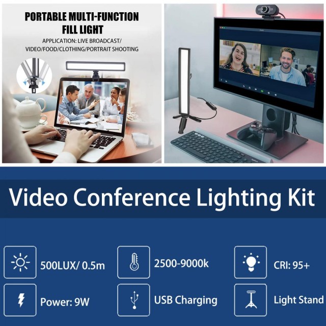 LED videó világítás készlet, 3 színű dimmelhető, 2500K-9000K USB LED-es videokonferencia világítás állítható állvánnyal, állítható klipszek YouTube-hoz, élő közvetítéshez, világításhoz, találkozókhoz, játékhoz, streaminghez