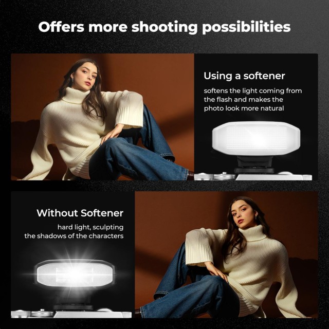 Univerzális kompatibilitás: A szabványos egyérintkezős vakupapucs illeszkedik a Canon, Nikon, Sony, Panasonic, Olympus, Pentax és más márkákhoz.