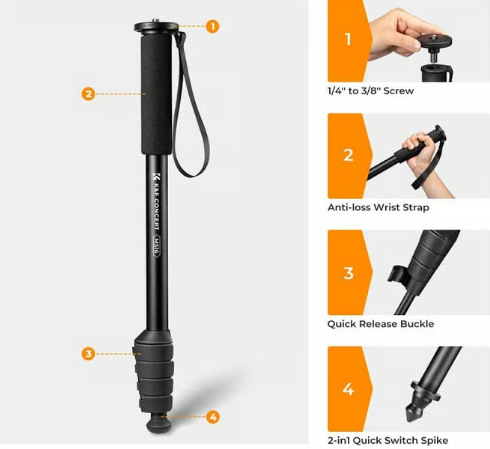 Fedezze fel a K&F Concept MS16 KF09.138V1 monopod kamerastativ páratlan mobilitását és erősségét, egy forradalmian új kiegészítőt, amely prémium alumíniumötvözetből készült, súlya mindössze 325 g, mégis lenyűgöző 10 kg-ot bír el, így tökéletes társ DSLR, tükör nélküli vagy akár kompakt fényképezőgépekhez, ahol minden gramm számít. A monopod maximális magassága 160 cm, ami kényelmes szemszintű fényképezést tesz lehetővé, és mindössze 43 cm-re összecsukható, így könnyedén elfér hátizsákokban vagy fényképezőgép-táskákban, ha spontán kalandokra indul, akár túrázik, sporteseményeket fotóz, vagy zsúfolt városi környezetben mozog.