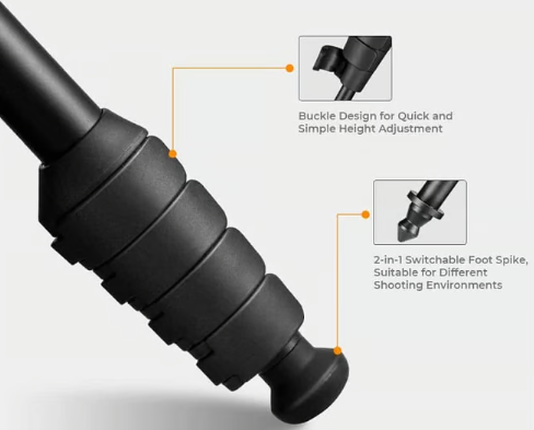 Az MS16-ot az innovatív ötlábas kialakítása teszi különlegessé, amely egyetlen rúdból állványhoz hasonló stabilitást biztosít azáltal, hogy az alapja szétterül, így egyenetlen terepen is jobb egyensúlyt biztosít, míg a 360°-os panorámafej folyékony, teljes körű pásztázást tesz lehetővé a mozgás követéséhez vagy a tájképek precíz komponálásához. A felhasználóbarát flip-lock rendszer villámgyors lábbeállítást és biztonságos talajt biztosít, és egy kielégítő kattanással rögzül a helyén, hogy megakadályozza a csúszást kritikus pillanatokban. A professzionális használat igénybevételeinek ellenállására tervezett monopod űrhajózási minőségű anyagokat és átgondolt ergonómiát ötvöz, lehetővé téve a kreatívok számára, hogy éles, stabil felvételeket készítsenek mozgás közben, anélkül, hogy feláldoznák a sebességet vagy a kényelmet – valóban a hordozhatóság és a teljesítmény tökéletes ötvözete egy elegáns csomagban.