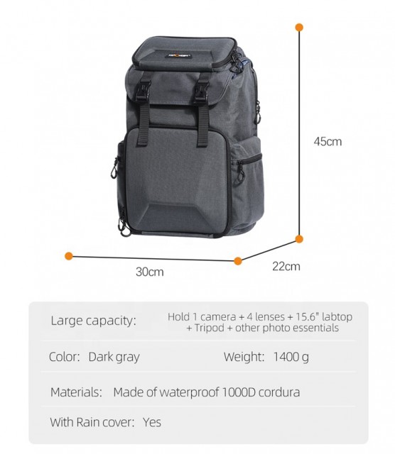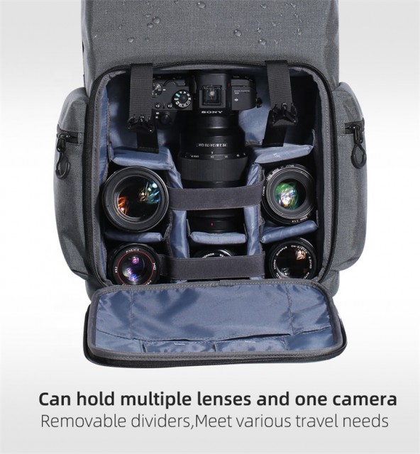 Mint egy professzionális kültéri fényképezőgép táska, a kapacitás 25L, a felső és alsó tárolórekeszek, egy fényképezőgép több objektívvel, elülső nyitás. Tartalmaz 1 fényképezőgépet + 4 objektívet + 15,6 hüvelykes labtop + állvány + egyéb fotózáshoz szükséges dolgok.